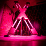 Fehér és pezsgőarany tónusú, BDSM ihletésű bútorok, valamint kellékekkel és kiegészítőkkel berendezett vitrinek teremtenek olyan vizuális világot, amely egyszerre inspirál alkotásra és segít kiszakadni a hétköznapokból. Legyen szó fotózásról vagy önkifejezésről, a tér arra hív, hogy megvalósítsd a saját, egyedi elképzeléseidet.