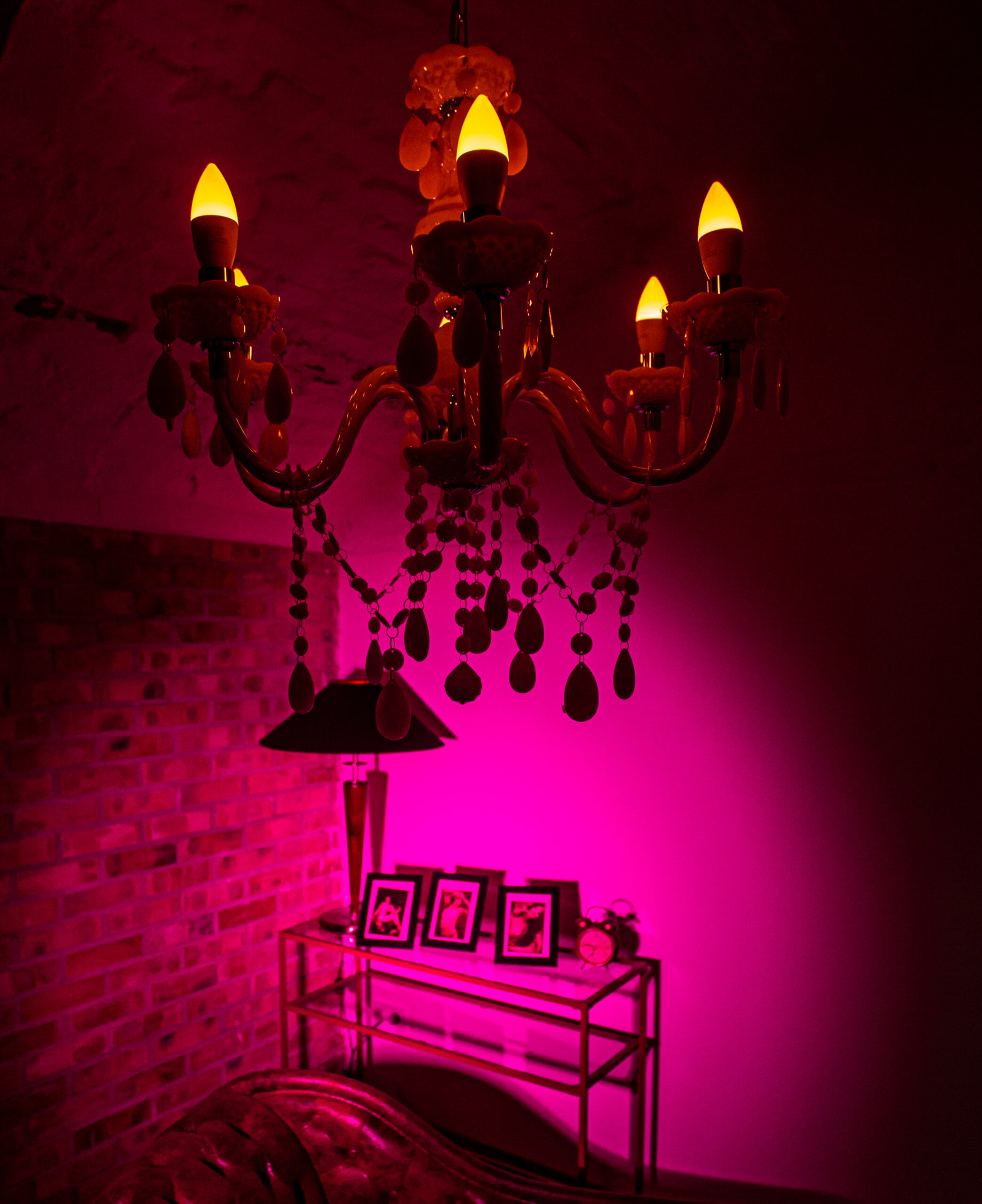Flexible RGB mood lights and lighting elements – chandeliers and other light sources – to create unique ideas and visual moods.