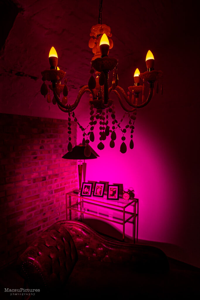Rugalmasan állítható RGB hangulatfények és világító elemek – csillár és egyéb fényforrások – az egyedi elképzelések és vizuális hangulatok kialakításához.