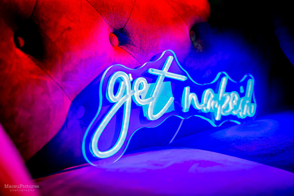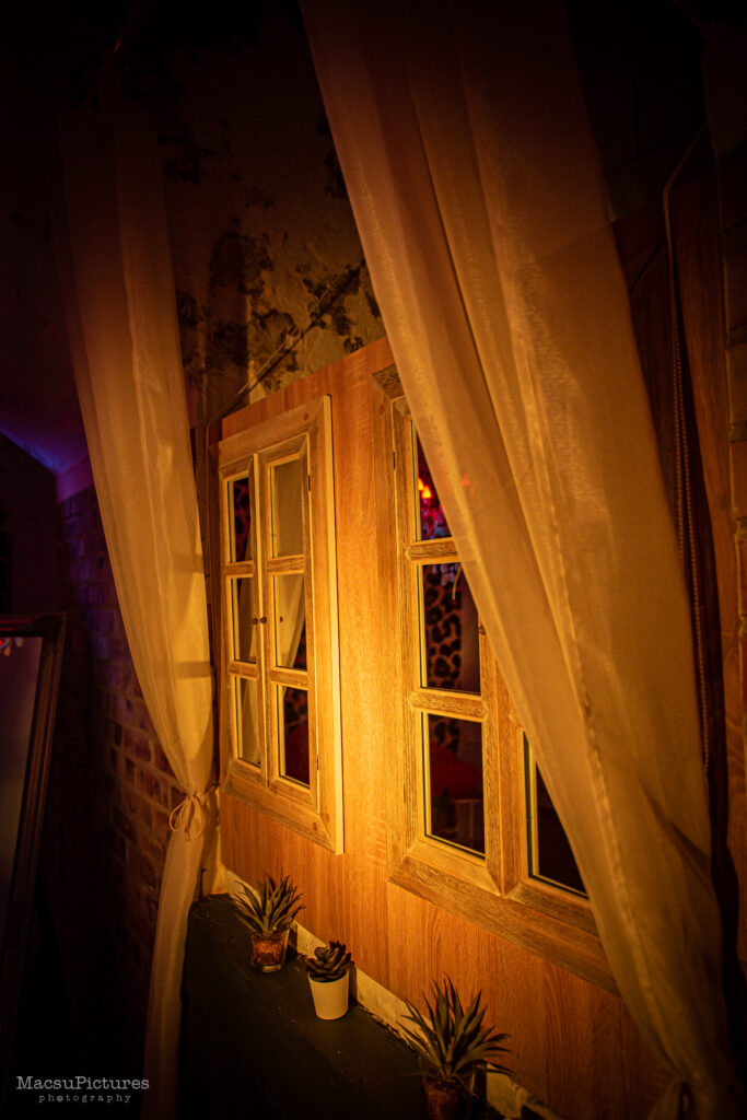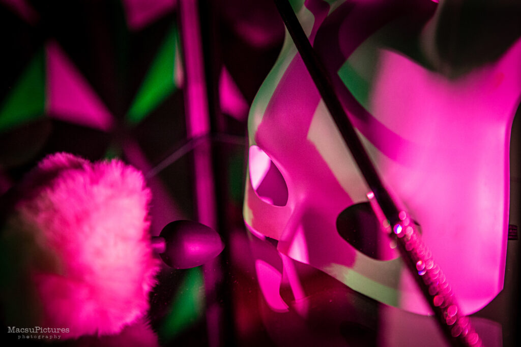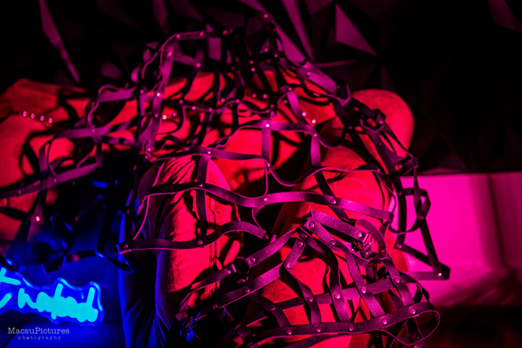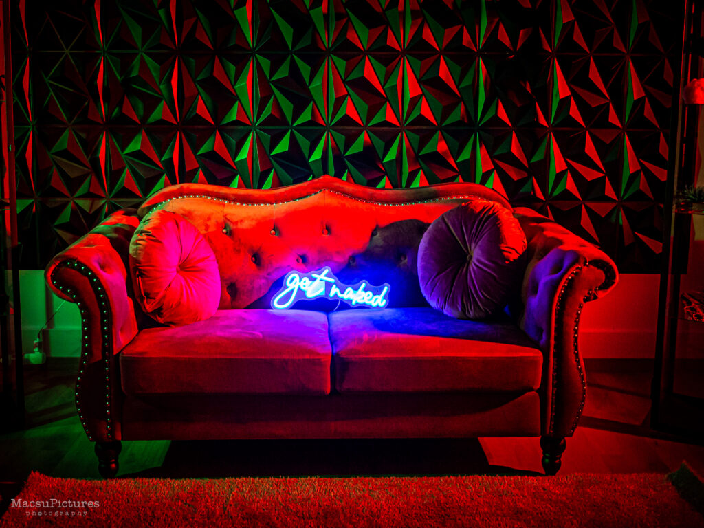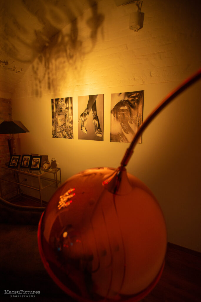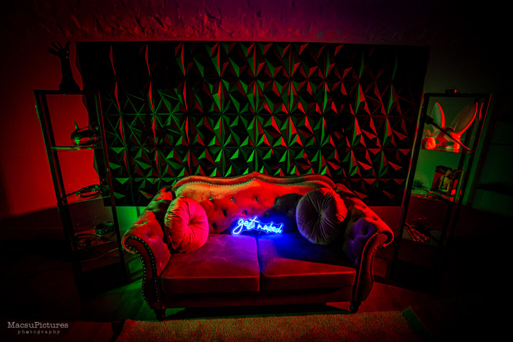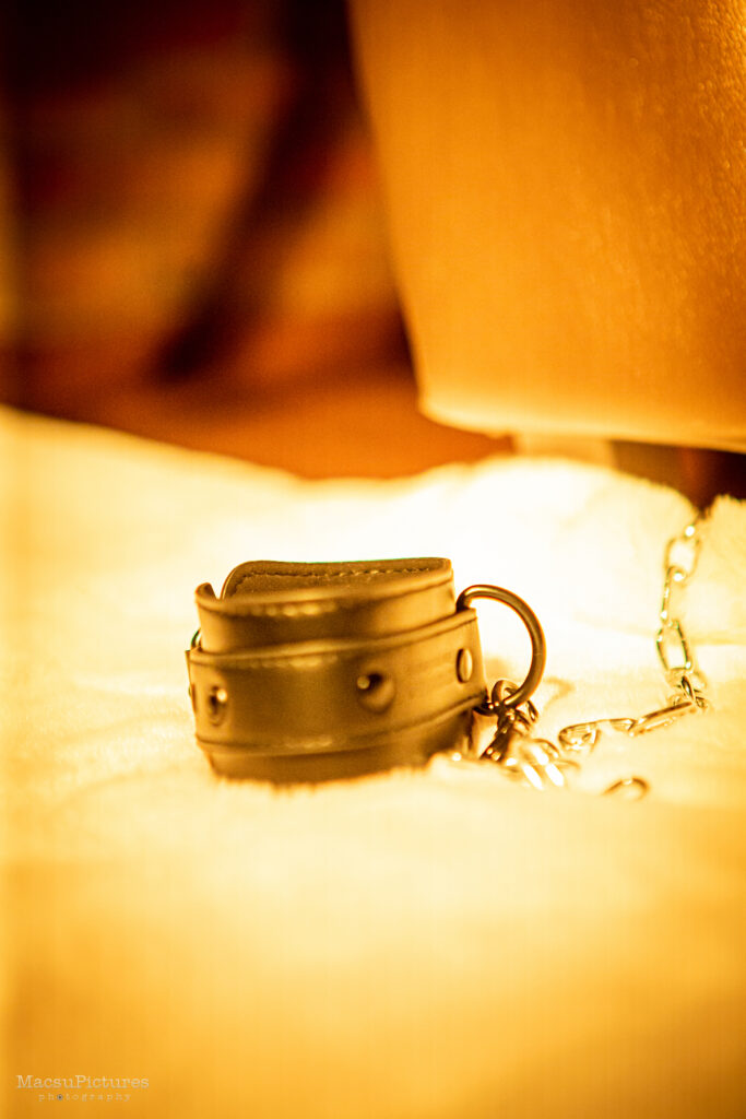 Fehér és pezsgőarany tónusú, BDSM ihletésű bútorok, valamint kellékekkel és kiegészítőkkel berendezett vitrinek teremtenek olyan vizuális világot, amely egyszerre inspirál alkotásra és segít kiszakadni a hétköznapokból. Legyen szó fotózásról vagy önkifejezésről, a tér arra hív, hogy megvalósítsd a saját, egyedi elképzeléseidet.